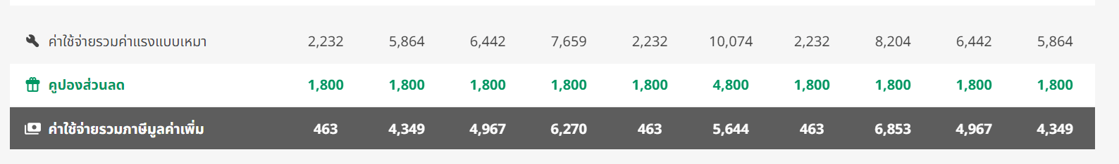 นอกจากนี้ ยังมีคูปองส่วนลดในแต่ละช่วงที่ช่วยลดค่าใช้จ่ายในการซ่อมบำรุง: